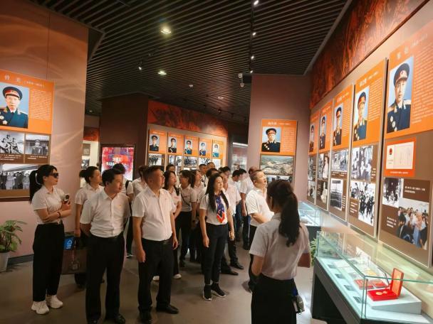 一进入将军园,一座巍然耸立的大群雕便映入眼帘,三面军旗雕塑格外醒目,仿佛在默默诉说着兴国在革命战争年代为争取自由解放所付出的巨大牺牲。在将军馆展厅内,讲解员饱含深情地讲述着将军们的英雄事迹,从长征路上的艰难险阻,到抗日战争的烽火硝烟,再到解放战争和抗美援朝的浴血奋战,先辈们的英勇壮举一一展现。这些事迹不仅彰显了将军们卓越的军事才能,更体现了他们坚定的革命信念和崇高的精神品格,让在场的党员干部们深受触动。