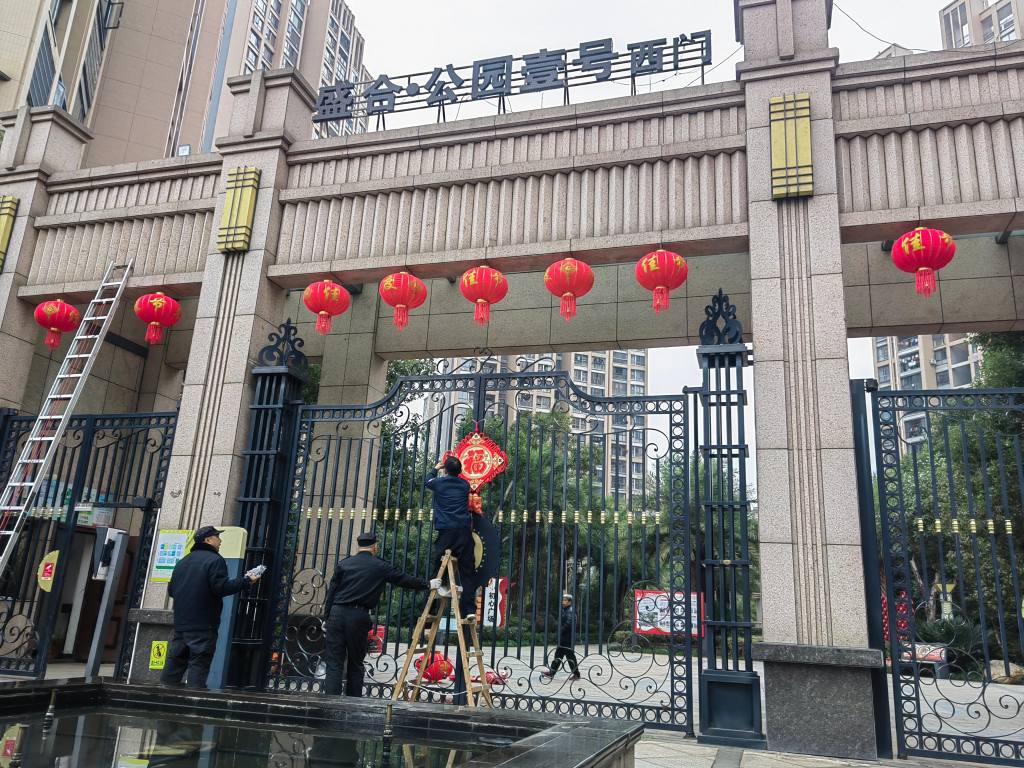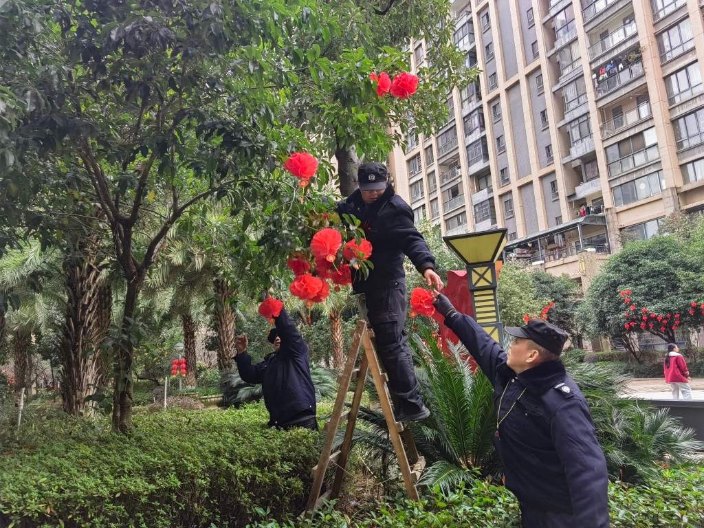 岁序更替,春归有期,马年新春的脚步悄然临近。为让小区处处洋溢浓厚年味,物业服务中心精心谋划、匠心布置,全力打造有温度、有氛围的新春家园。工作人员穿梭在小区东、西大门、主次干道、休闲 广场、单元门口等各个地方,将红彤彤的灯笼、色彩鲜艳的彩旗依次悬挂,在绿化带、休闲区点缀造型精致的马年春节主题景观小品,一笔一画勾勒年味,一景一物传递温情。