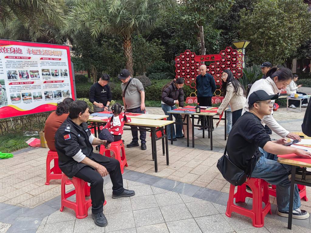 “翰墨飘香迎马年,笔墨浓情送祝福”。为弘扬中华民族优秀传统文化,营造喜庆祥和的马年新春氛围,2月5日,小区精心开展“迎新春、送春联”主题活动。活动现场,志愿者们挥毫泼墨、笔走龙蛇,将对居民的美好祝福融入笔墨之间,一幅幅笔力遒劲、寓意吉祥的春联铺满桌面,“马跃春风添吉庆,家迎喜事纳安康”“福满家园添瑞气,马腾盛世启新程”等一幅幅春联,既承载着对马年新春的美好期许,也传递着对居民生活的真挚祝福。